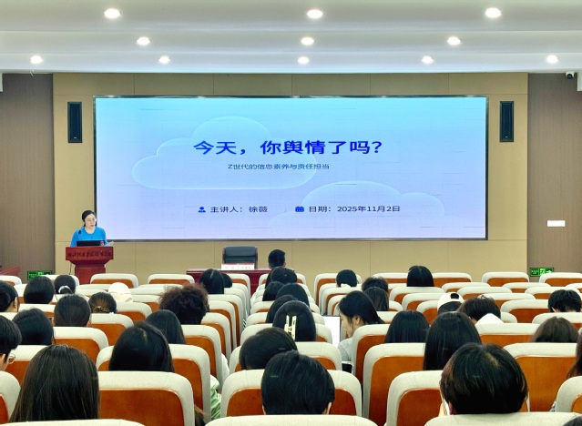 第一讲由徐薇老师主讲,主题为“信息素养与责任担当”。课程设置8个核心模块,系统涵盖舆情定义与核心要素、舆情与舆论概念辨析、网络舆情时代特征、热点案例透视、舆情应对智慧等关键内容。授课中,徐薇老师结合近期典型时事热点案例,深入阐释舆情应对“黄金4小时”原则及官方与个体的舆情应对逻辑,针对“低级红”“高级黑”等宣传风险点着重警示,引导学生骨干熟练掌握信息辨别方法、恪守理性发声准则,并倡议:擦亮双眼辨信息,理性发声有担当,营造清朗网络空间,精准锚定Z世代青年在复杂信息环境中的责任坐标。