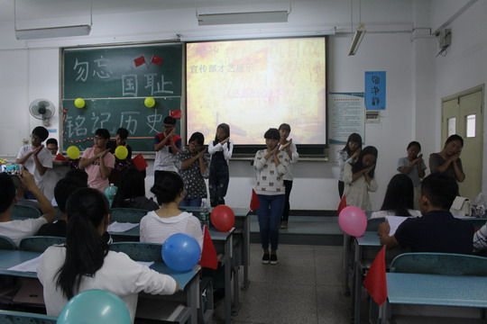 本次团会的主题是:铭记历史、勿忘国耻。团会伊始,团支书王文介绍入党流程和推优条件,为干事们普及了入党知识。随着主持人对中国抗日战争的介绍,各成员了解了抗战的屈辱历史,深受感染。另外,团会过程中还穿插着有意义的小游戏,各部门也都带来了精心准备的节目,秘书处的干事为大家带来的爱国诗歌朗诵声情并茂,活管部干事的小品中体现着浓浓的爱国情,宣传部干事表演的“感恩的心”和实践部干事表演的小品“小兵张嘎”更是让在场的人深受感动,多次赢得掌声。团会临近尾声,会长江宇峰总结发言,他希望青协各成员能够铭记历史,用行动诠释 “奉献、友爱、互助、进步”的志愿者精神。