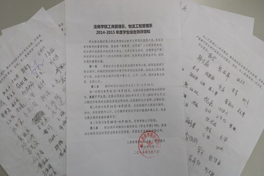 在交流会上,各位老师及学生对提出的问题和建议充分讨论,查漏补缺,起到了良好的效果。大家对本学年度综合测评工作的一些做法非常认可,如:系部制定2014-2015学年度学生综合测评须知,告知学生综合测评各阶段的时间进程,要求各班级学生签字确认表示知晓,避免后期评选奖学金等荣誉时出现问题;制定系部综合测评加分细则,汇总学生在院系各项校园文化活动中的获奖情况等,方便老师及学生查询。同时大家也对综合测评工作提出了需要进一步完善的意见,如:加分细则中的基本素质测评应该更加细化和量化,有据可依;针对部分学生对综合测评不重视,要进一步加强宣传和教育等。