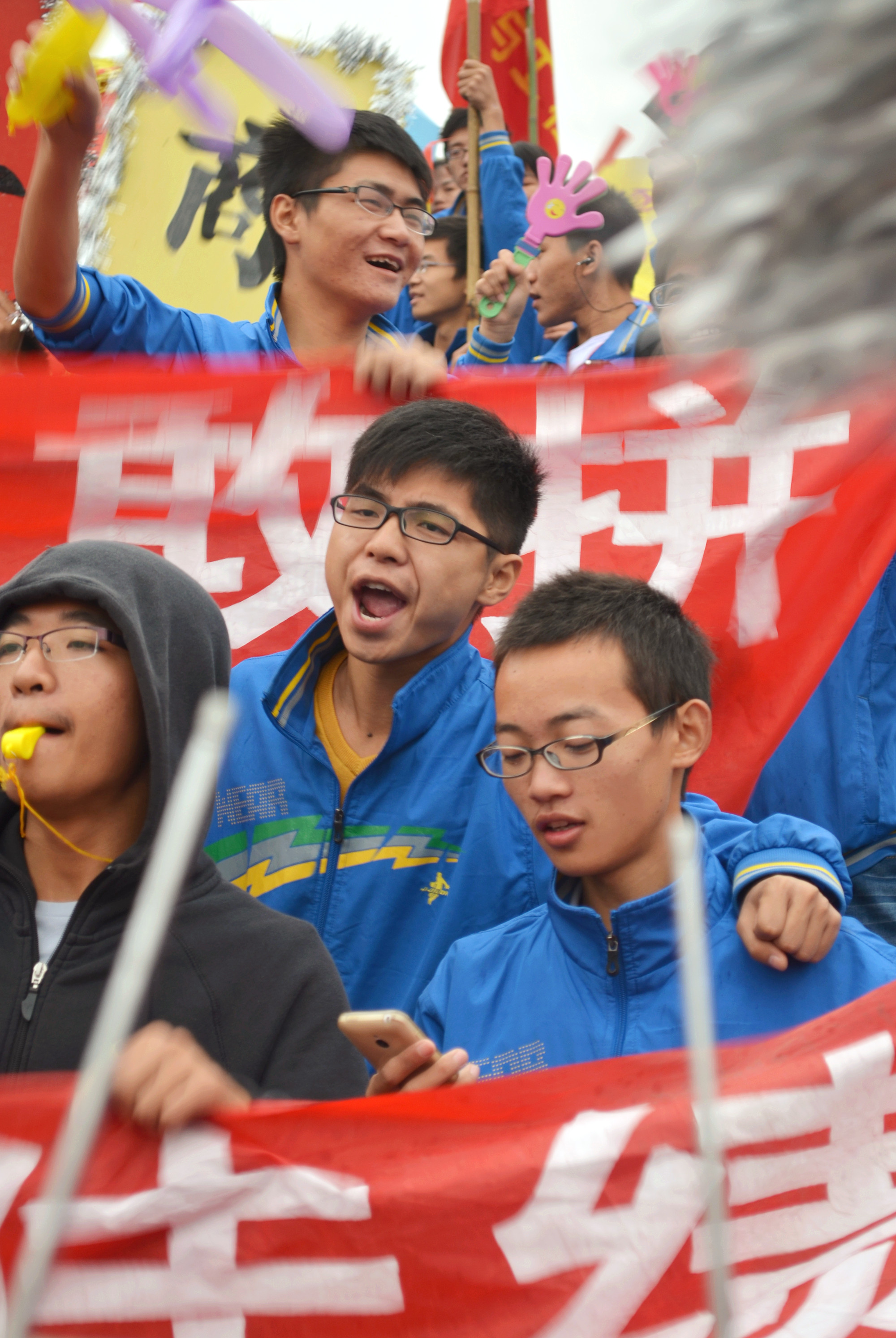 本网讯(记者 方畅 见习记者 徐莎 曹朝彪 摄影记者 朱丽洁)一面大红旗在看台上方上迎风飘扬,下面的鼓点阵阵,气势磅礴。“咚咚咚”,随着震耳欲聋的鼓声,在系学生会的带领下,信管系的同学们纷纷站起来,双手高举着彩带,有节奏的上下摆动着。