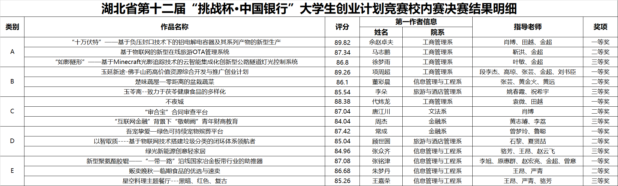 以上15项获奖作品将代表学校参加第十二届“挑战杯·中国银行”大学生创业计划竞赛。如有异议,请在3日内向院团委反馈。
