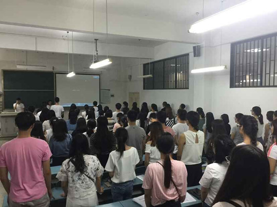 会议的主要内容是:首先,奏唱国歌,全体党员追忆入党初心。其次,党员先锋队队长葛桢通报了近期工作计划,一是新生助理辅导员选拔与培训;二是2016级新生迎新工作;三是新生军训期间红歌的教唱与排练。最后,徐老师就会议内容作总结,“希望在座的党员在工作上能主动出击,帮忙到底,服务好法商2016级所有学子,帮助他们尽快适应大学生活,做好大学规划。”徐老师说道。