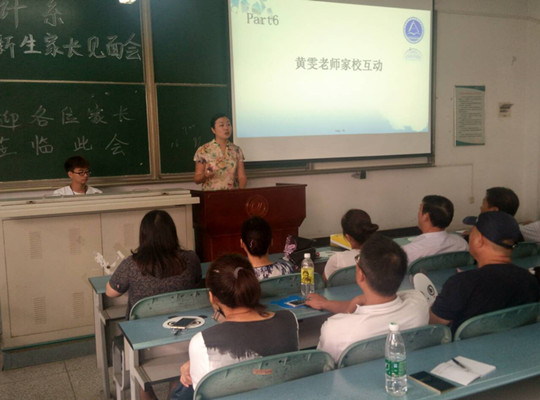 会议伊始,主持人代表会计系对来自全国各地的新生家长们表示了热烈欢迎。随后陈晓晓老师就会计系学生日常管理制度、会计专业的就业前景和校企合作模式等进行了详细介绍。郭德松老师重点介绍了会计专业建设情况,尤其是“如何去学会计、用会计”的方法,赢得了在场学生家长的阵阵好评。老生代表何源学长分享了他在大学的学习经历、学生干部的成长历程,家长们感同身受。而系党总支书记黄雯老师结合学生日常管理提出的关于家校互动的发言,从四个方面提醒家长们关注学生的身心健康成长,在校安全教育,提高防骗意识等,尤其是加强家校互动平台的深入交流,令新生家长们对会计系的严格管理有了一个更加深入全面的认知。