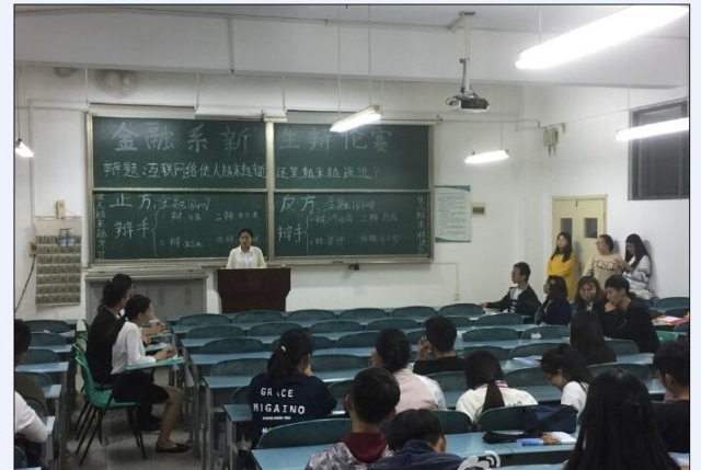 本网讯(通讯员 徐丽亨 文露)金融系新生辩论赛于10月初拉开序幕,经过激烈的角逐,在循环赛中失败的班级将进入复活赛。17日18:30教4-312,金融16402和金融16406班进行了一场别开生面的复活赛,主题新颖,唇枪舌战,竞争激烈。本次辩论赛的正方是金融16402班,观点为‘互联网使人亲近’,反方是金融16406班,观点为‘互联网使人生疏’。