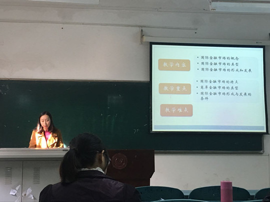 本网讯(记者徐丽亨)为了迎接学院青年教师授课大赛,提高选手参赛水平,也为了增进青年教师相互学习交流机会,11月22日上午8:30,金融系全体专任教师齐聚J4-110,参加教学授课观摩会,共有13名教师上台授课作交流展示,各位老师分别讲授了本学期所担任课程的相关内容。