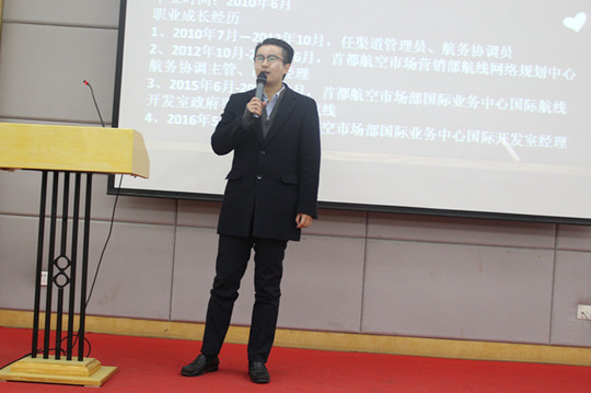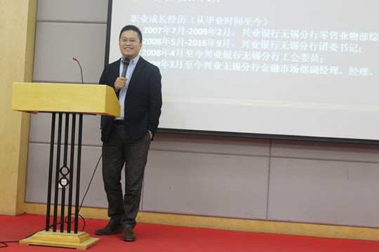 本网讯(特约记者罗敬通讯员胡文倩)12月3日上午,会计系第二届“情系母校”校友讲座在大学生活动中心三号报告厅举行。会计系党总支书记黄雯老师,会计系团总支书记高志荣老师,优秀校友代表兴业银行股份有限公司无锡分行总经理助理陈诚、北京首都航空有限公司市场部国际业务中心国际开发室经理龚珺及学生代表参加了讲座。