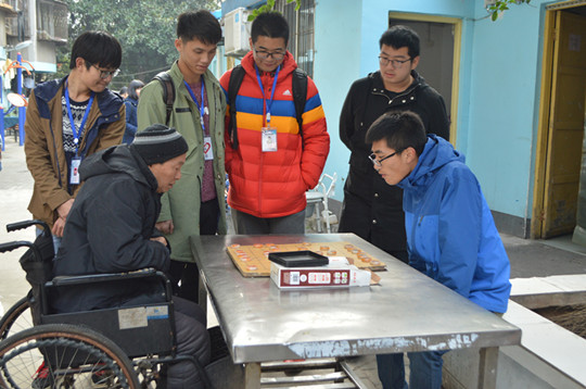 早上8点,志愿者们抵达敬老院。简单问候后,志愿者们便行动了起来。一些志愿者主动帮助工作人员打扫庭院,晾晒衣物,为老人整理床铺,而另一些志愿者则上前与老人们嘘寒问暖,与老人一起唱歌,陪老人下象棋,欢声笑语此起彼伏,充满了整个小院。一阵忙碌后,部分同学提议带老人们到公园散步。在工作人员的安排下,志愿者们推着轮椅上的老人来到附近公园散步、晒太阳。此间,同学们还给老人们表演了精心准备的节目。志愿者们的关怀犹如冬日暖阳一般温暖,老人们的脸上浮现出了笑容,公园里呈现出一派其乐融融的景象。临近中午,志愿者们一边与老人聊天一边推着老人回到敬老院。活动结束后同学们与老人一同合影留恋。
