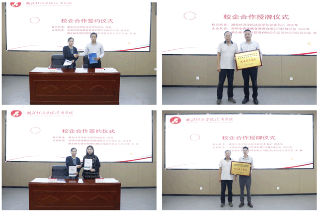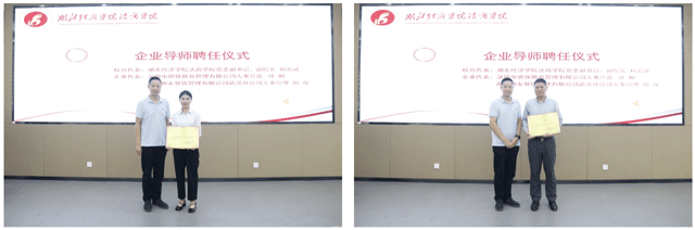 签约仪式上,院领导分别与两家企业签订校企合作协议、授予“就业实习基地”牌匾、颁发“企业导师”聘书。