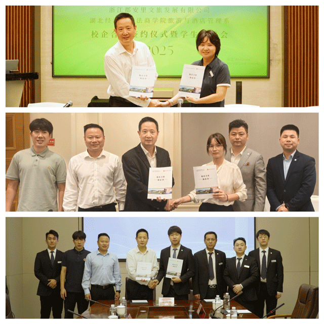 在座谈会上,校企双方聚焦实习成果与人才培养展开深入交流。企业方对我院实习生表现赞誉有加,认为法商学子不仅专业基础扎实、学习适应能力强,更是在岗位上展现出高度的责任心与团队协作精神,为酒店运营效率提升和服务品质优化作出了积极贡献。杨宏斌对企业提供的优质实习平台予以感谢。他表示,学院将不断优化人才培养方案,提升学生综合素质,主动对接企业需求,为企业输送更多“用得上、留得住、发展好”的高素质应用型人才。会上,双方签订校企合作协议,未来将在岗位拓展、技能竞赛、职业规划指导等方面深化合作,共同打造产教融合新标杆。
