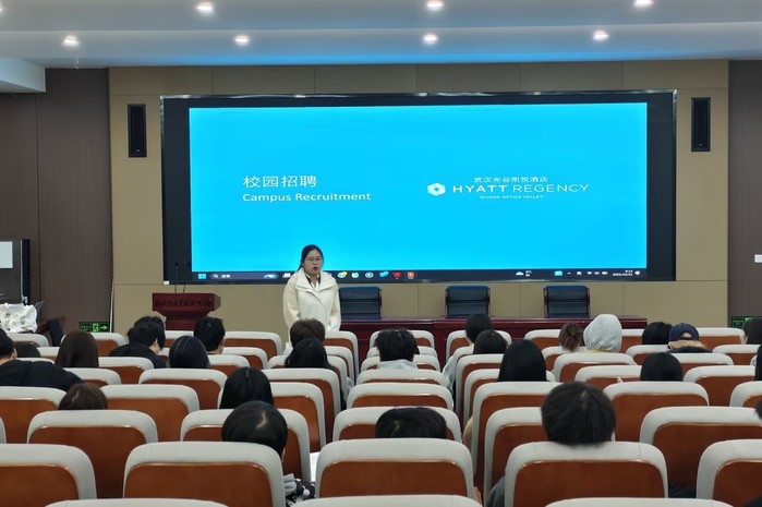 本网讯 进一步搭建我系学生顶岗实习优质平台,提升专业认识和能力10月21日上午,我系2025年实习生双选会活动顺利举行。活动邀请了深圳市德保膳食管理有限公司、湖北师友餐饮管理有限公司武汉分公司、武汉光谷万豪酒店、绍兴富悦温德姆酒店等十校企合作企业到校宣讲和招聘,2024烹饪工艺与营养专业70余名学生参加活动。