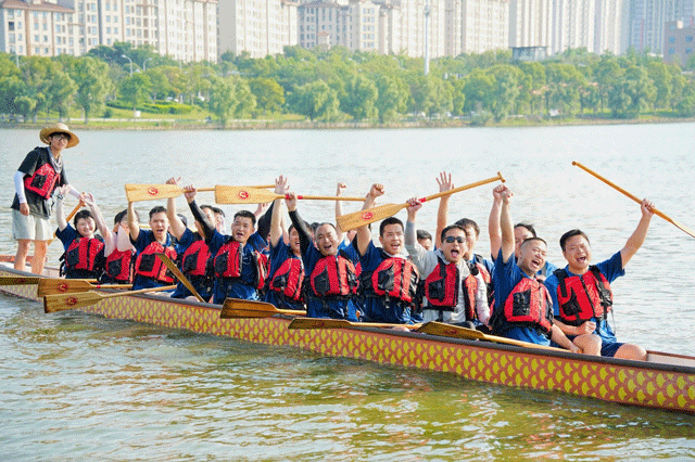 我院教职工龙舟队夺冠后的喜悦瞬间