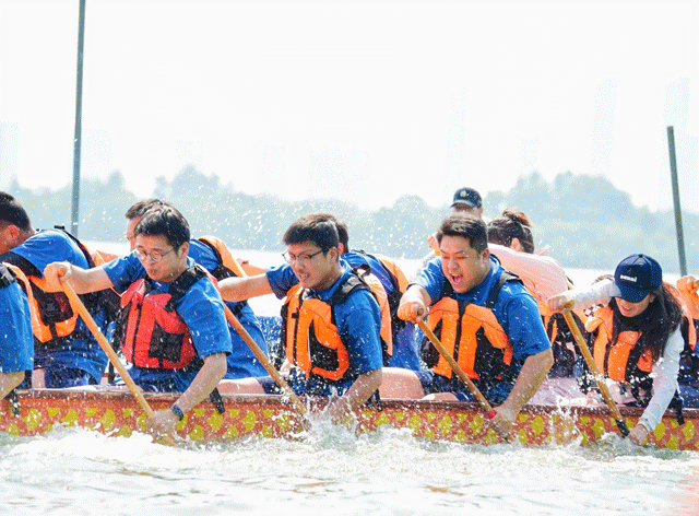 本次比赛设有教工组、产教融合与校友组、学生甲组和学生乙组四个组别,共有20余支队伍参加300米直道竞速比赛。赛场上,学院教职工龙舟队运动员同乘一艘船、齐划一双桨,心往一处想、劲往一处使,拧成一股绳、用尽全身力,他们配合默契、节奏统一,面对强劲的竞争对手毫不畏惧,最终以出色的表现率先冲过终点线,成功夺冠,展现出昂扬向上的精神风貌和强大的团队战斗力、凝聚力,深刻诠释了“坚韧自强、敬业乐群、务实担当、奋进拓新”的法商精神。