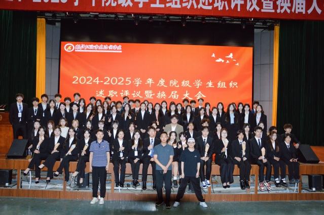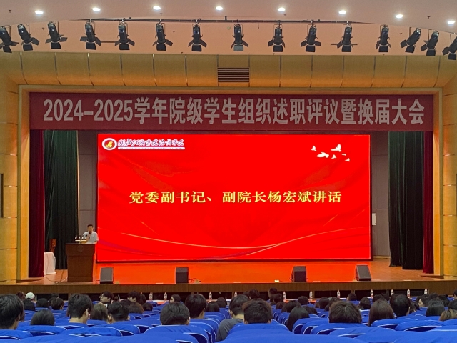 本网讯(通讯员 姚婧)为进一步加强院级学生组织自身建设与发展,提高组织执行力与凝聚力,全面回顾总结2024-2025学年工作成效,系统谋划新学年工作,10月10日晚18时,我院2024-2025学年院级学生组织述职评议暨换届大会在大学生活动中心一号报告厅顺利举行。学院党委副书记、副院长杨宏斌,党委委员、组织宣传部部长单敏,党委委员、学生工作部部长吕学斌,团委副书记周志,团委专职团干赵云飞、陈小俊及各院级学生组织全体成员参加。