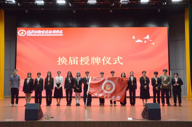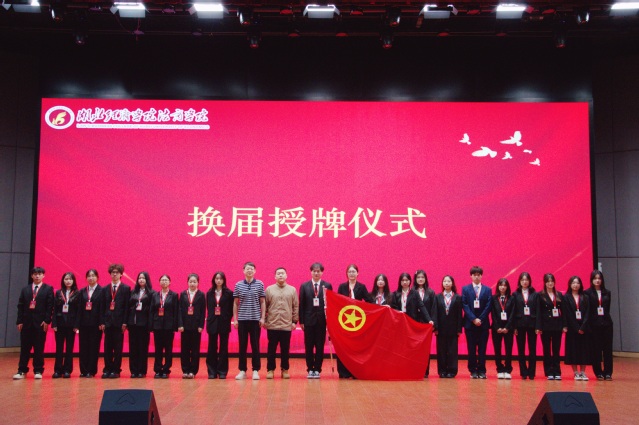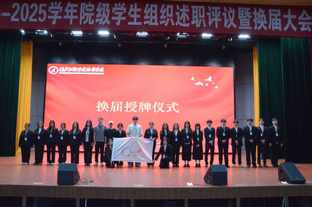 换届大会环节,上一任院学生会主席王畅学作为学生骨干代表发言,分享工作中的成长感悟与经验,生动诠释了学生组织“服务同学、锻炼自我”的核心宗旨。随后进行聘书发放仪式,指导老师为上一届组织主席颁发聘书;在换届授牌与会旗交接仪式中,指导老师为新任学生组织负责人授牌,新任主席为新任部长授牌,上一届主席与新任主席完成会旗交接。新一届院团委学生副书记魏子坤作为学生骨干代表发言,表达了履职决心。