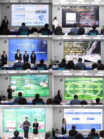 本次校级决赛汇聚全院29件优质作品,分设先进制造、新一代信息技术、生物医药与健康科技、新能源新材料、现代农业与食品科技、新消费与文化创意、现代服务与社会治理七大赛道,覆盖人工智能、智慧医疗、乡村振兴、文化传承、生态环保、数字经济、民生服务、智慧农业等多个前沿领域。从自闭症早期筛查的声纹识别系统、眼部术后行走辅助器具等民生科技项目,到旱地冷凝滴灌、全视域农田智慧管理等助农技术方案;从非遗IP赋能的农文旅融合项目、非遗面食文化创新推广,到AI驱动的数字金融、社区碳足迹管理平台;从3D打印人工鱼礁、光伏清洁机器人等生态环保成果,到老年认知障碍防御系统、视障者智能导航手环等适老助残产品,各参赛团队围绕项目创新亮点、研发实践过程、社会应用价值、未来发展规划及团队协作成效等内容,全面进行展示汇报,逻辑严谨、表达流畅,充分展现出新时代法商学子扎实的科创素养、锐意进取的创新精神与朝气蓬勃的青春风采。
