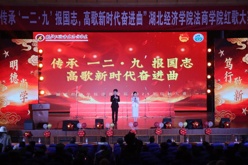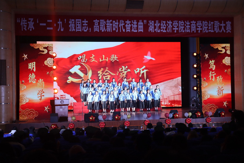 本网讯(通讯员 赵诗怡)为弘扬爱国主义精神,传承红色文化基因,12月9日晚,由我系承办的“传承‘一二·九’报国志,高歌新时代奋进曲”红歌大赛在大学生活动中心一号报告厅成功举行。院党委书记邓志华出席并致开幕辞。党委副书记、副院长杨宏斌,武汉纺织大学外经贸学院学工部副部长、校团委书记余婷,外经贸学院美育中心金颖悟,学院教务部长汪韵,院团委副书记周志担任大赛评委。各系党总支书记、师生代表及参赛学生共计1000余人参加活动。