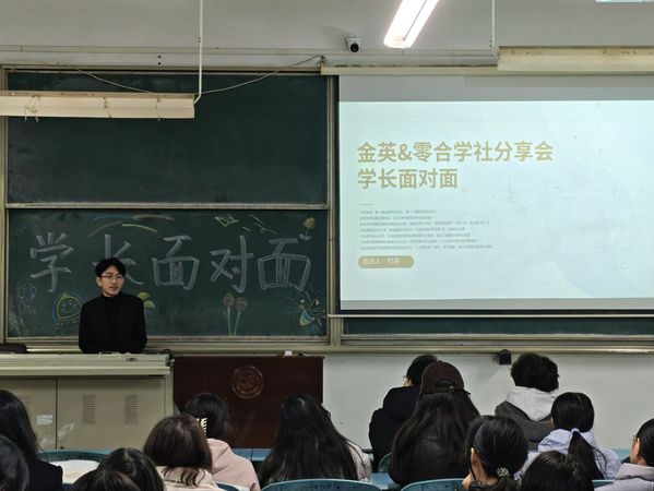 本网讯(通讯员 昌姝杉)11月19日晚,教四310教室座无虚席。由金英学社与零合学社联合主办的学长面对面经验分享会在此隆重举行,2024届优秀毕业生付涛学长应邀担任主讲嘉宾,为在场同学带来了一场精彩纷呈的经验分享会。