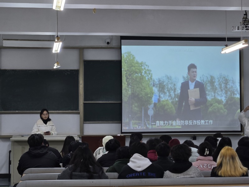 活动伊始,申万宏源证券投教专员通过视频展示形式,为同学们带来"防非第一课",详细讲解了非法证券活动和金融诈骗的常见类型及防范措施。随后,财富顾问通过生动案例,向同学们普及了证券投资基础知识,强化了金融风险防范意识。