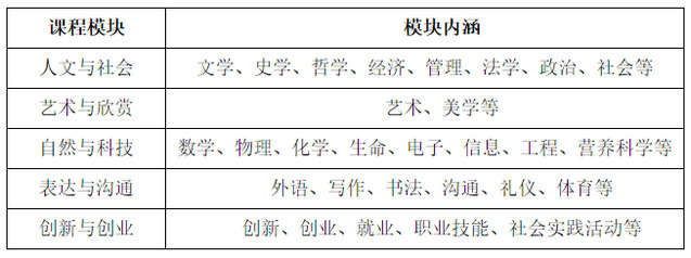 学生根据实际情况自主选修,在校期间应选修不同类别的课程模块,其中人文与社会、艺术与欣赏、自然与科技、表达与沟通、创新与创业五大类课程模块均可选修。课程模块可进行多元组合,避免出现重复类别选课,要求5个模块中至少选择2个模块课程修读。