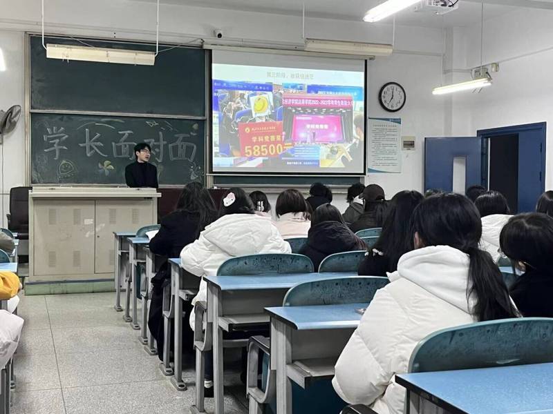 本网讯(通讯员 昌姝杉)为帮助同学们明晰发展方向、破解学业困惑,11月19日晚,零合学社联合金英学社在教四310教室举办“学长面对面”经验分享活动。2024届优秀毕业生付涛学长携自身成长经历与实践感悟到场,与现场同学深度交流,内容务实鲜活,现场氛围热烈。