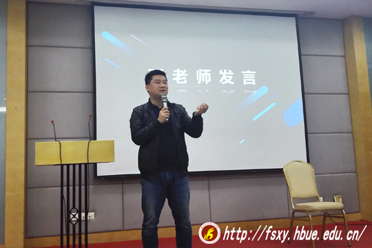 邓澄老师致开幕辞,他对到场的同学表示了热烈欢迎,他表示会计科技文化月历经十一届,足以证明会计科技文化月的含金量,并鼓励同学们积极报名参赛。
