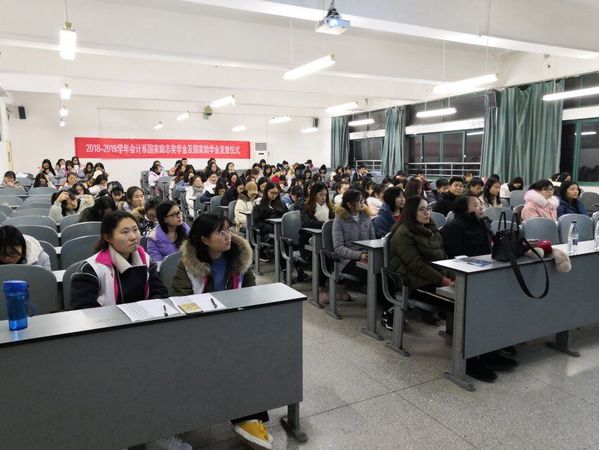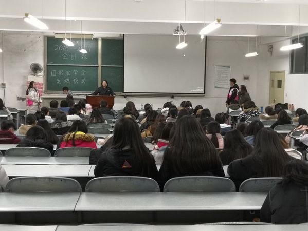 本网讯(特约记者 廖晶晶 通讯员 赵子杰)12月11日下午17:45,由会计系综合办主办,会计系学生事务服务中心承办的会计系诚信感恩暨国家助学金发放仪式在逸夫教学楼501教室举行。会计系综合办副主任陈晓晓老师、学生事务服务中心廖晶晶老师及会计系一百多名受助学生代表出席了会议。