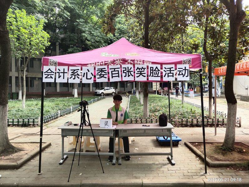 本网讯(通讯员 涂嘉文 摄影 钱晨玉)风和日丽,万里无云。会计系于5月21、22号两天在九华厅门口全天摆点,开展了一场热闹非凡的“百张笑脸”校友照片征集活动。