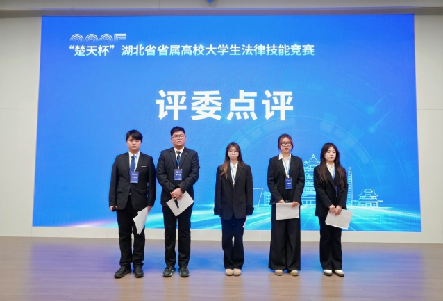 本网讯 近日,2025年“楚天杯”湖北省省属高校大学生法律技能竞赛圆满落幕。我院法学专业学子汪立乐、王一博、沈语涵、陈子昕、王璐在常自全老师精心指导下历经多轮比拼脱颖而出,最终在湖北经济学院、江汉大学、长江大学、武汉科技大学等九支决赛队伍中斩获团体二等奖,充分展现了我院法学专业的教学成效与学子们的扎实功底。