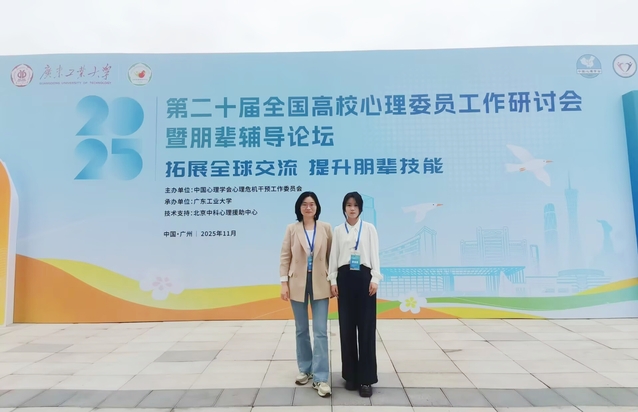 本网讯(通讯员 封静)11月4日至7日,第二十届全国高校心理委员工作研讨会暨朋辈辅导论坛在广东工业大学举行。来自国内外知名高校、研究机构的专家学者以及百余所高校心理委员近800余人齐聚一堂,共同探讨高校朋辈心理辅导与心理健康教育的创新发展路径。我院大学生心理健康教育中心陈静老师、会计23408班张榮婷同学参加本次会议。