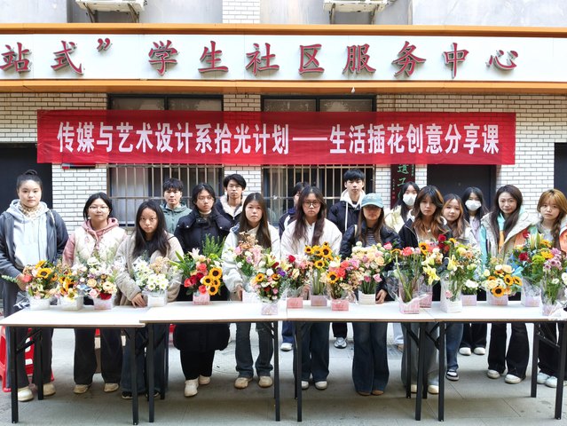 本网讯(通讯员 高雨西)11月20日,由大学生事务中心的主办、传媒与艺术设计系承办的“拾光计划”系列活动之生活插花创意分享课,在学生社区“一站式”服务中心门口温情启幕。本次活动将花艺创作与美育实践深度融合,为同学们搭建起感知美、创造美、分享美的鲜活平台。