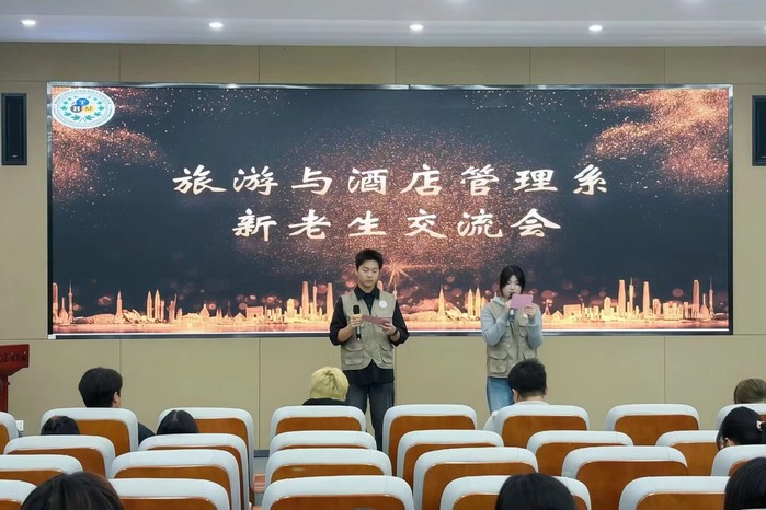本网讯(通讯员 向荆城)为帮助新生更好地适应大学生活,明确学业方向,10月26日晚,我系2025年新老生交流会在J4-101成功举办。新生班辅导员马华强、刘乐乐、李天及2025级新生班级、系团总支学生会全体成员共同参与。烹饪25401班陈耀阳、烹饪25301班孙凡萍主持活动。