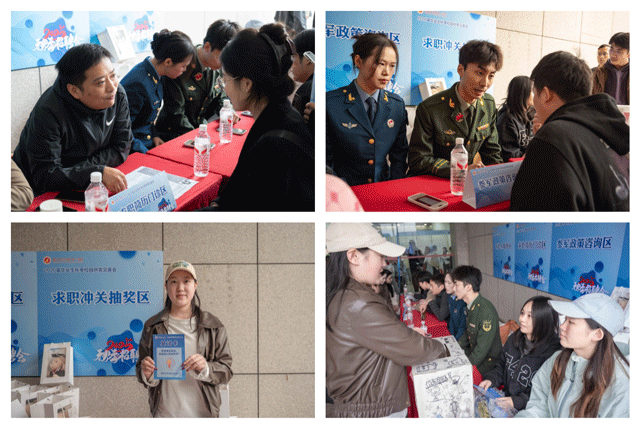为提供精细化就业服务,现场精心设置了求职简历门诊区、参军政策咨询区、求职AI 服务区、求职冲关抽奖区四大功能区。求职简历门诊区,辅导员老师们现场坐镇,为毕业生提供专业的简历修改指导,助力提升求职竞争力;参军政策咨询区,为有志投身军营的毕业生解读最新入伍政策,指引报国路径;求职AI服务区,运用智能化手段,快速分析毕业生的专业背景、技能水平、求职意向等多方面信息,为其精准匹配岗位,提供个性化求职方案;在求职冲关抽奖区,毕业生可凭企业面试获得的“复试卡”参与抽奖,享受“Offer与礼品”的双重惊喜。四大功能区的协同运作,构建了从简历优化、政策咨询、AI匹配到面试激励的全链条就业服务体系,以提供多元化、个性化的支持有效助力毕业生的求职体验并取得实效。