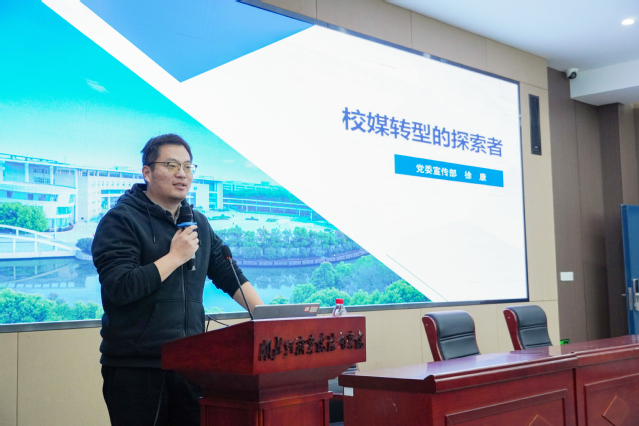 湖北经济学院党委宣传部职员、大学生记者团指导老师徐康作《校媒转型的探索者》专题讲座