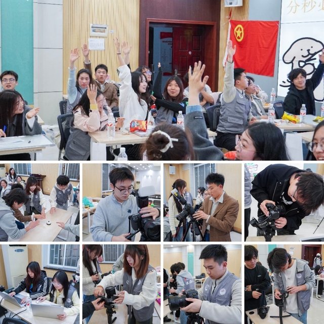 在“知识问答”与“分秒必争”环节,选手们围绕时政理论、新闻写作、摄影参数、推文排版等专业知识展开激烈抢答,展现出扎实的知识储备。在“提纲挈领”与“知文达理”环节,参赛队员根据给定的校园活动素材,现场构思并撰写新闻稿件与拍摄提纲,彰显了深厚的文字功底和新闻敏锐度。“知行合一”与“得心应手”环节则将赛场变为实操演练场,不仅考验团队使用秀米、135编辑器进行图文排版的速度,还通过相机、闪光灯、稳定器等器材的组装及视频后期剪辑开展沉浸式实战考核,全方位检验了选手的业务能力。