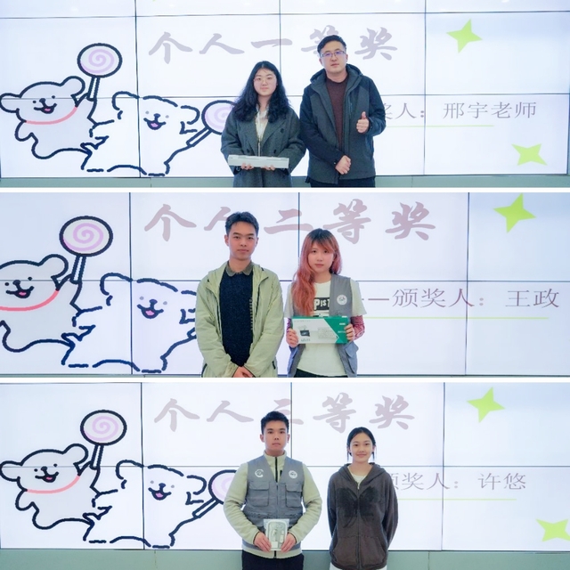 邢宇、王政、许悠分别为优秀个人颁奖