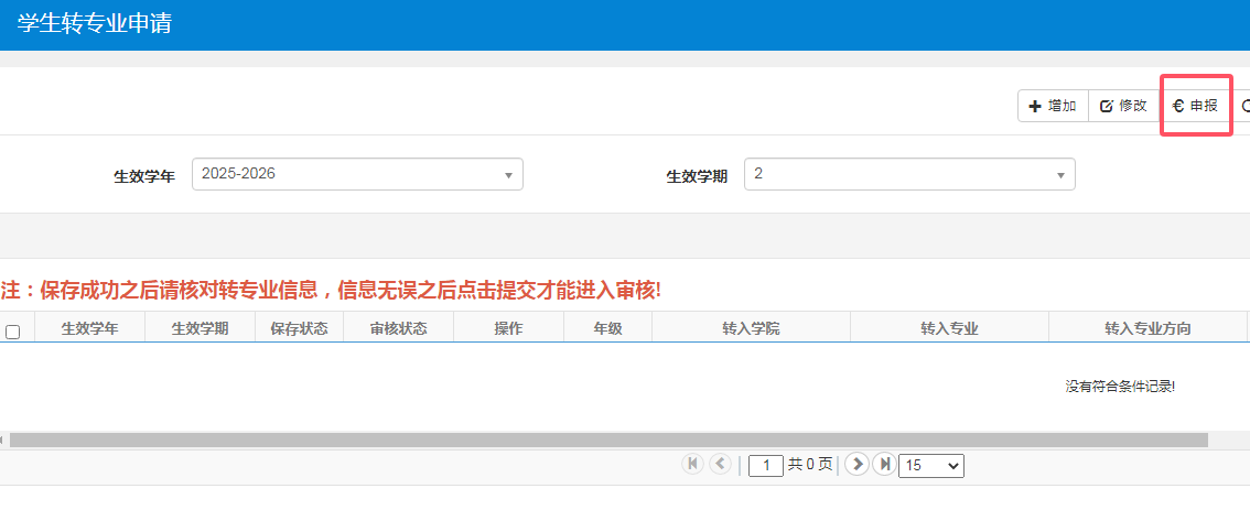 申报完成后需提交并打印《转专业申请表》一份;