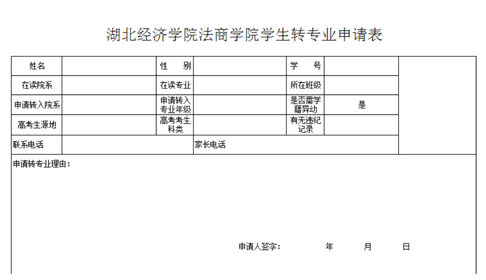 《转专业申请表》经申请转出系部按照《湖北经济学院法商学院转专业实施办法》的有关规定,初步审核后交申请转入系登记。申请转入系汇总《转专业申请表》后,于12月26日16:00前报教务部。