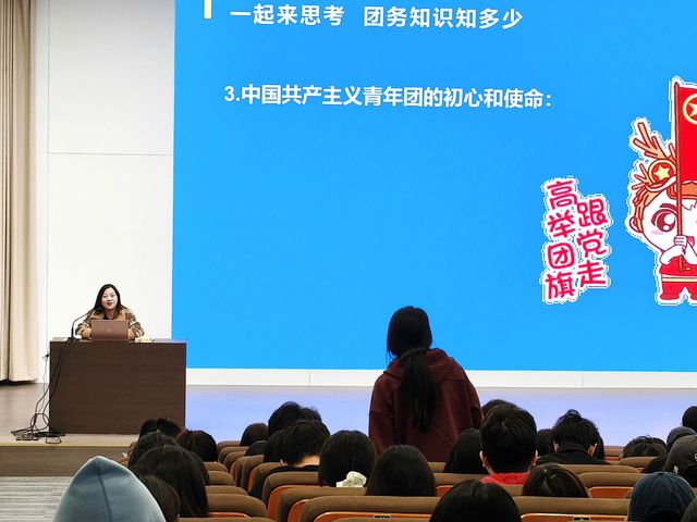 工商管理系团总支书记陈浩老师以“争作新时代优秀的共青团员”为主题展开。课程分为“保持和增强团员先进性”“推优入党,向党组织靠拢”和“新时代共青团员的成长目标”三节。通过强调成为优秀团员需严格执行章程和组织原则,保持先进性,以实际行动向党组织靠拢,让同学们对新时代优秀团员的标准与成长路径有了更清晰的认知。
