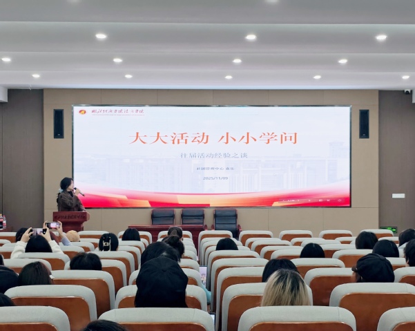 第一讲由原社团管理中心主席袁乐以“大型活动组织全流程实操”为主题,结合院级实践案例,围绕“策划-筹备-执行-总结”核心框架展开解析。策划阶段明确活动类型、规模与场地的适配逻辑;筹备环节细化物料采购、点位布置及多平台外宣工作,时间规划遵循“框架清晰、动态可调”原则;执行阶段强调专项小组分工与多轮彩排,通过“齿轮联动”实现高效协同;总结阶段注重数据反馈与经验沉淀,同时分享资料规范管理、应急预案制定等实用方法。