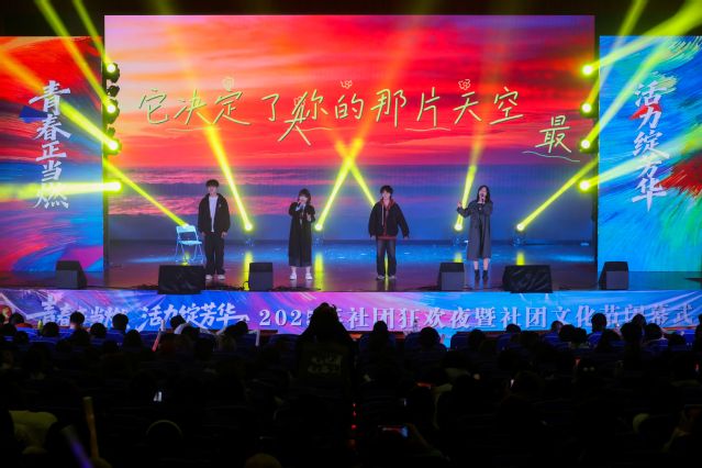 玩美舞社献上舞蹈《三彩》,舞者们用灵动舞姿展现青春的活力与激情,赢得阵阵喝彩。大学生艺术团呈现小品《消逝的周日》,幽默地反映生活中的时间管理问题,引人深思。沧浪汉服社与大学生艺术团携手带来走秀《我执·东方》,展示中国传统服饰的典雅与风采。大学生艺术团声乐队赵鸿穗、胡禹凡表演男女对唱《爱错》,深情演绎爱情故事,打动人心。
