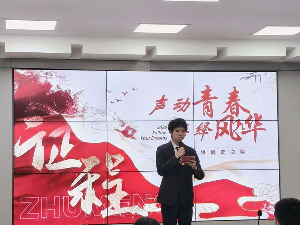 活动现场座无虚席,主持人登场后明确比赛规则、介绍评委阵容,决赛正式拉开帷幕。个人赛环节,选手们紧扣“我的校园生活”主题,结合自身求学经历,分享从迷茫到坚定的成长感悟,演讲或激昂澎湃或娓娓道来,充分展现了青年学子的思想活力。随后的团体赛中,各参赛队伍配合默契,以多元形式升华主题,将经典课本与当代青年思考深度融合,传递了将个人理想融入国家发展的宏大抱负,诠释了奋斗初心。每场展示结束后,评委团围绕演讲内容、语言表达、舞台风貌等维度严谨评审、独立打分,计分人员同步完成分数统计与核对,保障赛事公正流畅推进。
