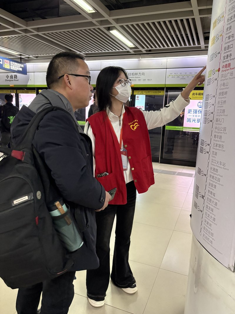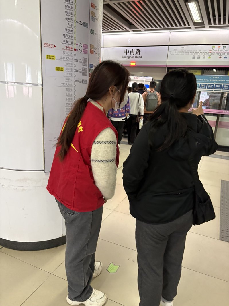 本网讯(通讯员 余忆 摄影 陈玉涵)11 月 29 日,金融系青年志愿者协会组织志愿者前往中南路地铁站开展 “青春护航,畅行地铁” 志愿服务活动。本次活动以 “助力文明出行,传递志愿温情” 为宗旨,旨在为市民提供贴心便捷的地铁出行服务,同时搭建大学生社会实践平台,锤炼青年学子的责任担当与服务本领。