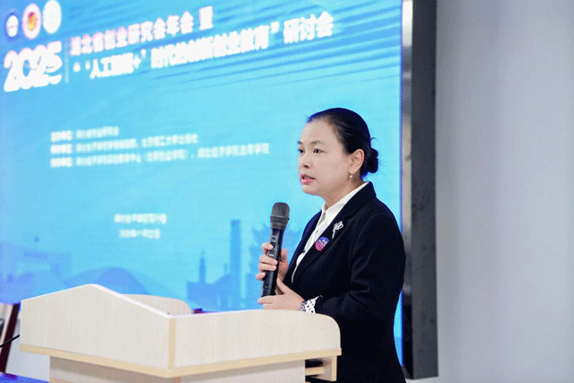 本网讯(通讯员 赵云飞)11月22日,湖北省创业研究会年会暨“‘人工智能+’时代的创新创业教育”研讨会在校内笃行楼举行。来自全省高校、企业及科研机构的专家学者齐聚一堂,围绕人工智能与创新创业教育的深度融合展开研讨,为湖北“双创”生态建设注入新动能。我院是大会协办单位,院长颜莉教授主持主旨演讲环节,院党委副书记、副院长杨宏斌作主旨演讲,学院办公室、团委负责人及相关人员参会。