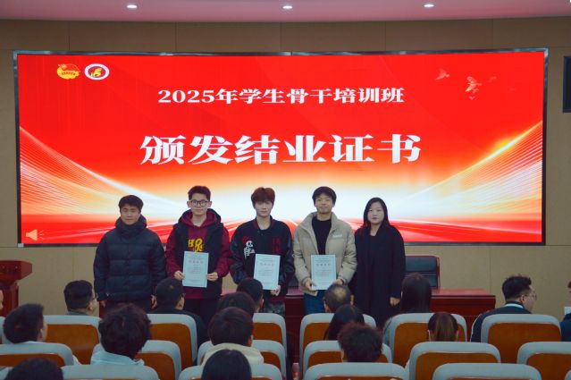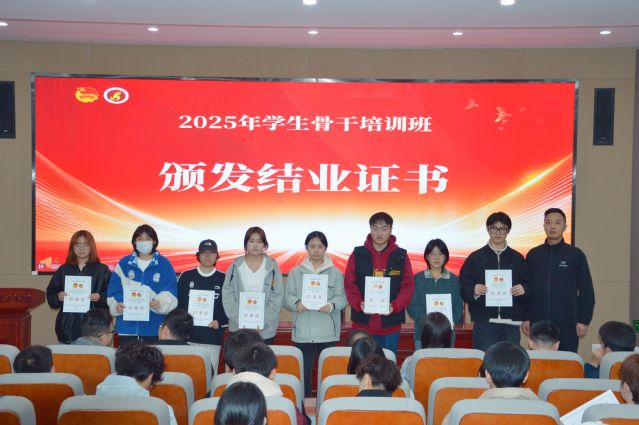 授课结束后举行了结业仪式。各学生组织指导老师为各组织学员颁发结业证书,各系团总支老师为各系学员颁发结业证书,祝贺各学生骨干顺利结业。
