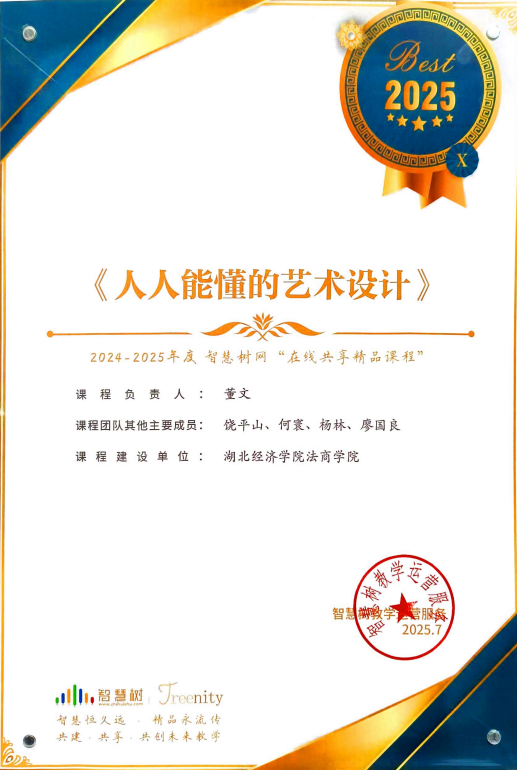 本网讯(通讯员 胡文红)近日,智慧树网公布了2024-2025年度“在线共享精品课程”评选结果,我院传媒与艺术设计系董文老师主讲的《人人能懂的艺术设计》在线课程成功入选。