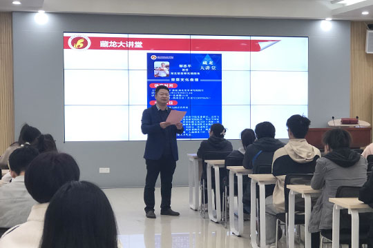 邹志平介绍,楚菜文化自信包含楚菜历史自信,1978年随州曾侯乙古墓发掘100多件楚国饮食烹饪器具和《楚辞·招魂》的记载,足以说明楚菜的源远历史;楚菜特色自信主要指“鱼米之乡、蒸煨擅长、鲜香为本、融和四方”,湖北是鱼米之乡、九省通衢,楚菜取长补短融合了四方特色发展成独具一格的风味;楚菜技术自信,他列举了卢永良教授及我系学生张慧、张子豪的参赛成绩,足以证明楚菜技术受到的认可;楚菜成果自信主要指编撰出版发行《中国楚菜大典》、制定发布21道《中国楚菜标准》、制作播出20集《楚菜名宴》专题节目、连续举办三届的楚菜美食博览会、“湖北工匠”杯楚菜职业技能大赛等;谈及楚菜未来自信,他饶有兴致的向同学们介绍近期将培育楚菜一县一品,一乡(镇)一桌、培育中国十大美食之乡、申报世界美食之都、成立楚菜促进会等活动。