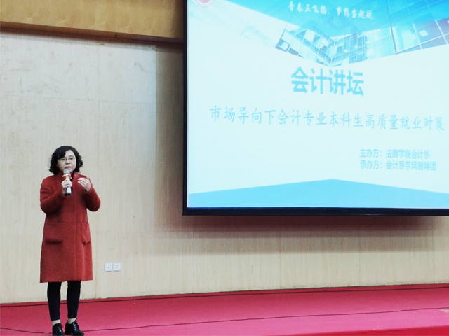 张庆教授以“凡事预则立,不预则废”开头,她表示,在当前市场饱和的情况下会计专业本科生应该如何实现高质量就业是一个非常重要的问题,会计专业本科生既要有新作为,培养自身能力谋求良好发展,更要有新思维,打破思维限制实现高质量就业。她具体介绍了会计专业本科生毕业的多渠道就业出路,指出会计专业学生不必拘泥于会计核算工作,务必要放宽眼界,实现多渠道高质量就业。