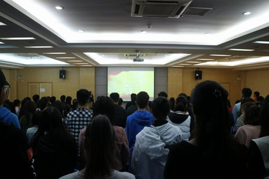此次仪式在团歌声中拉开序幕,大家纷纷站起,轻声吟唱,在场的全体人员皆昂首挺胸,以他们最好的姿态迎接此次仪式。会议正式开始后,金融系团总支学生会办公室主任詹磊康、洪凤别向大家阐述了此次培训的具体要求,也表达了对大家培训结果的殷切期待。紧接着,周刚老师以“喜迎十九大——坚定信念跟党走”为主题开展了此次培训系列讲座第一讲,周刚老师分别从政治素质、对党的认识和刚刚召开的“十九大”会议这三个方面,让大家更加明确了身为一名团员、一名党员的责任和使命,明白了作为共青团干该有的思想觉悟,周老师的培训赢得了在场同学们热烈的掌声。