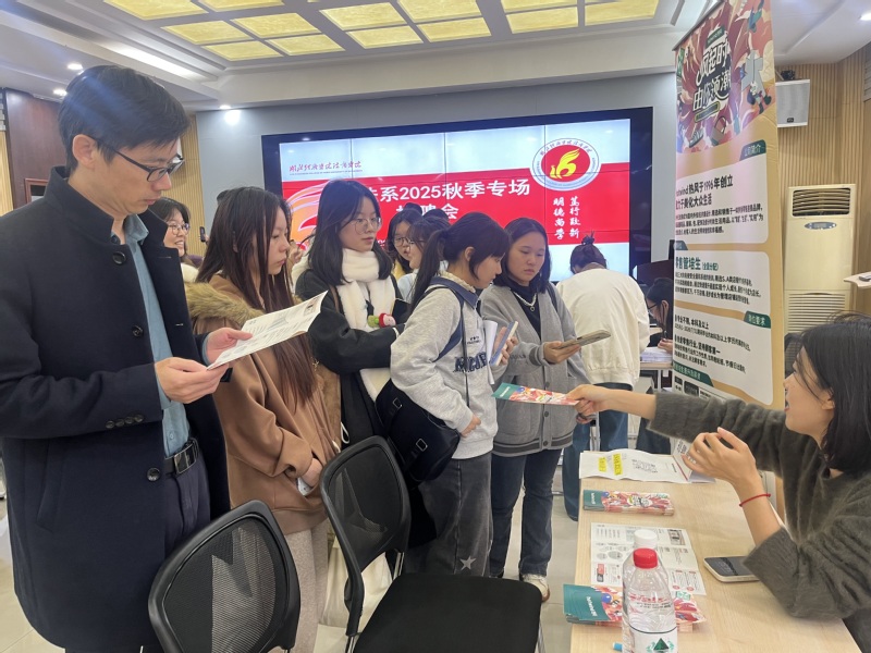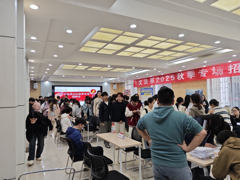 本网讯(通讯员 高志荣)为促进毕业生高质量充分就业,10月23日14:30,文法系在法商楼111会议室举办“文法系2026届毕业生秋季专场招聘会”。本次活动采用“宣讲+展台+面试”的一体化形式,吸引北京猿辅导线上学科培训学校、武汉恒信摩尔酒店管理有限公司汉阳威斯汀酒店分公司、武汉领格卓越教育科技有限公司上海热风时尚集团有限公司5家用人单位到场,提供法律顾问、助教培训、销售零售、外贸业务、英语前台交流等18类岗位,用人需求达112个,现场到场学生超过300人。