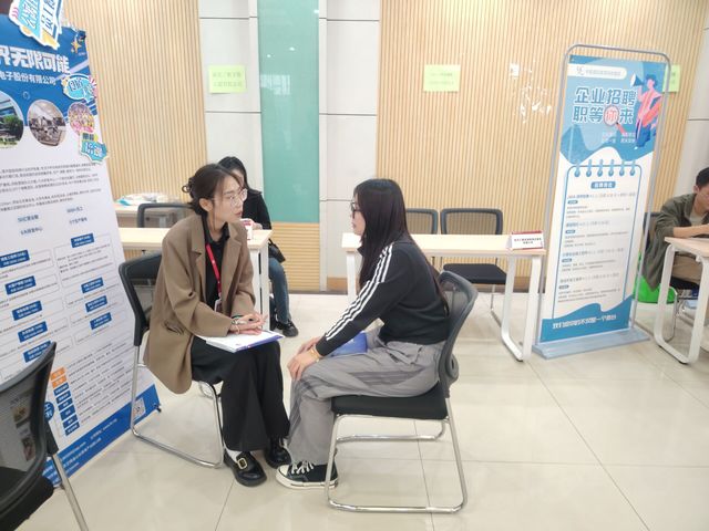 招聘会现场气氛热烈、秩序井然。专任教师、毕业生辅导员深入招聘会一线指导毕业生求职应聘。各用人单位展位前,求职者们手持简历与用人单位面对面交流咨询,用人单位耐心细致介绍岗位需求、技能要求及薪酬待遇等情况。部分非毕业班学生也热情高涨,积极关注各用人单位招聘信息,详细了解就业形势和需求,为自身职业生涯提前做好规划。